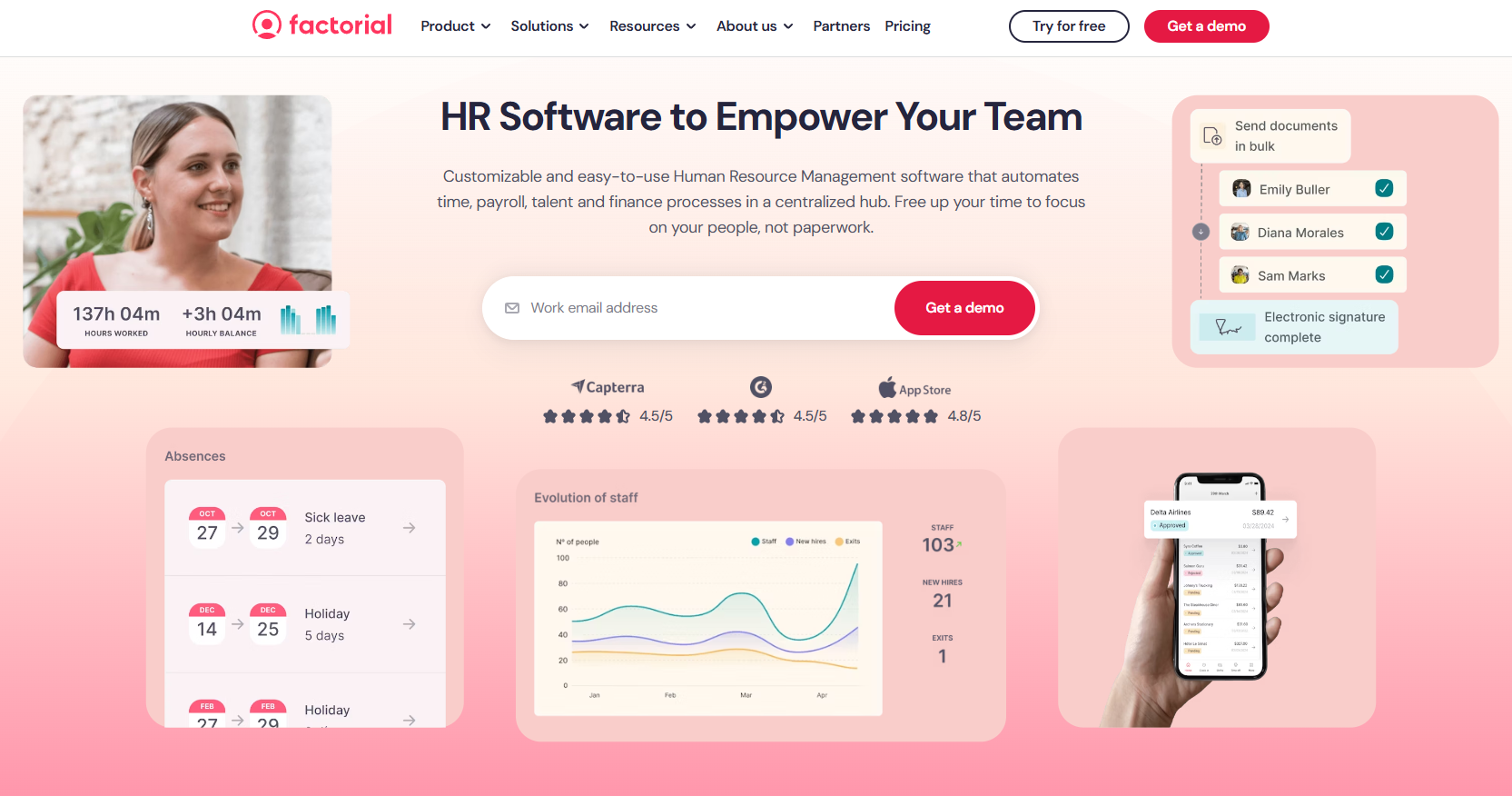 Factorial is a leading HR software company dedicated to helping businesses of all sizes streamline their human resources processes and empower their employees. Their cloud-based platform provides a comprehensive suite of tools for managing payroll, time off, performance reviews, and other essential HR functions.